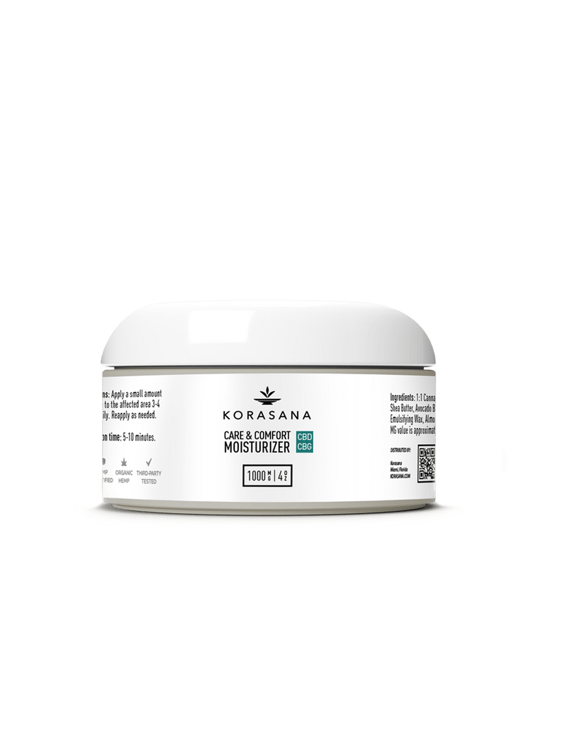 Korasana's Care & Comfort CBD Moisturizer is a miracle for your joints and skin! A soothing, luxurious CBD-infused body butter designed to penetrate and rapidly absorb into the skin. Our Shea Butter is super rich in Vitamin A, E, and Fatty Acids, which means that it is a great CBD moisturizer for all skin types! Your skin will feel and look youthful and be super soft to the touch!